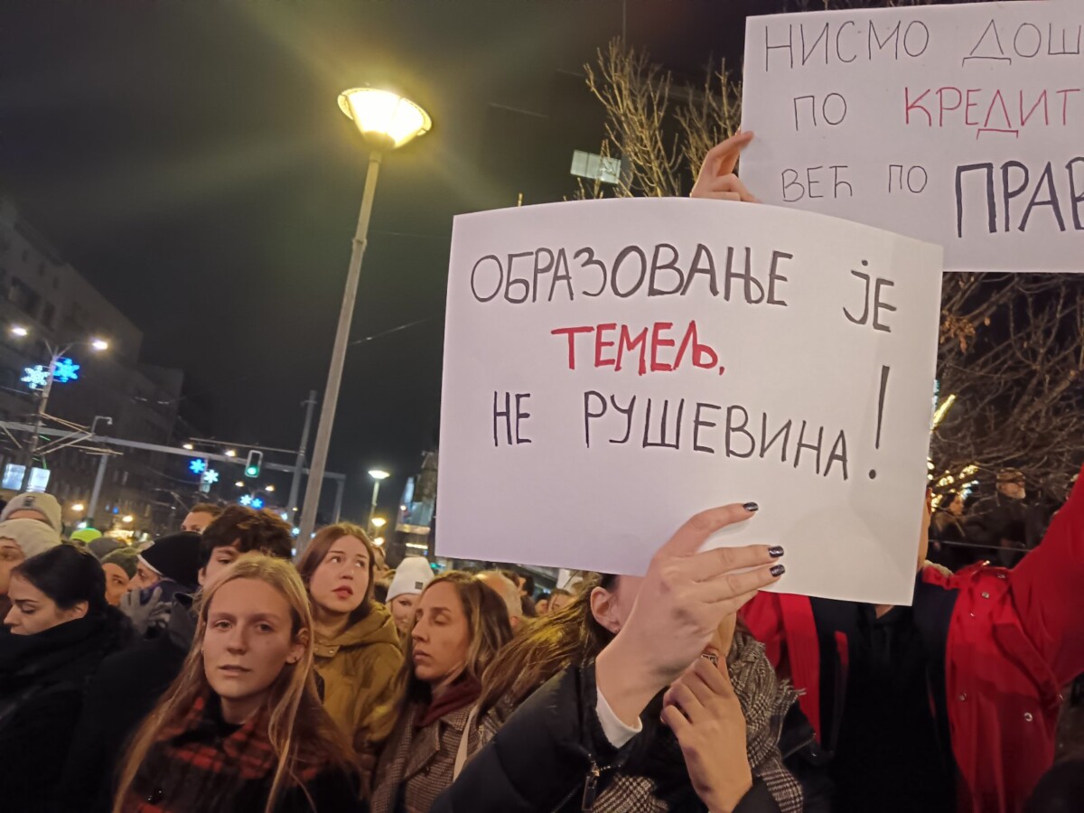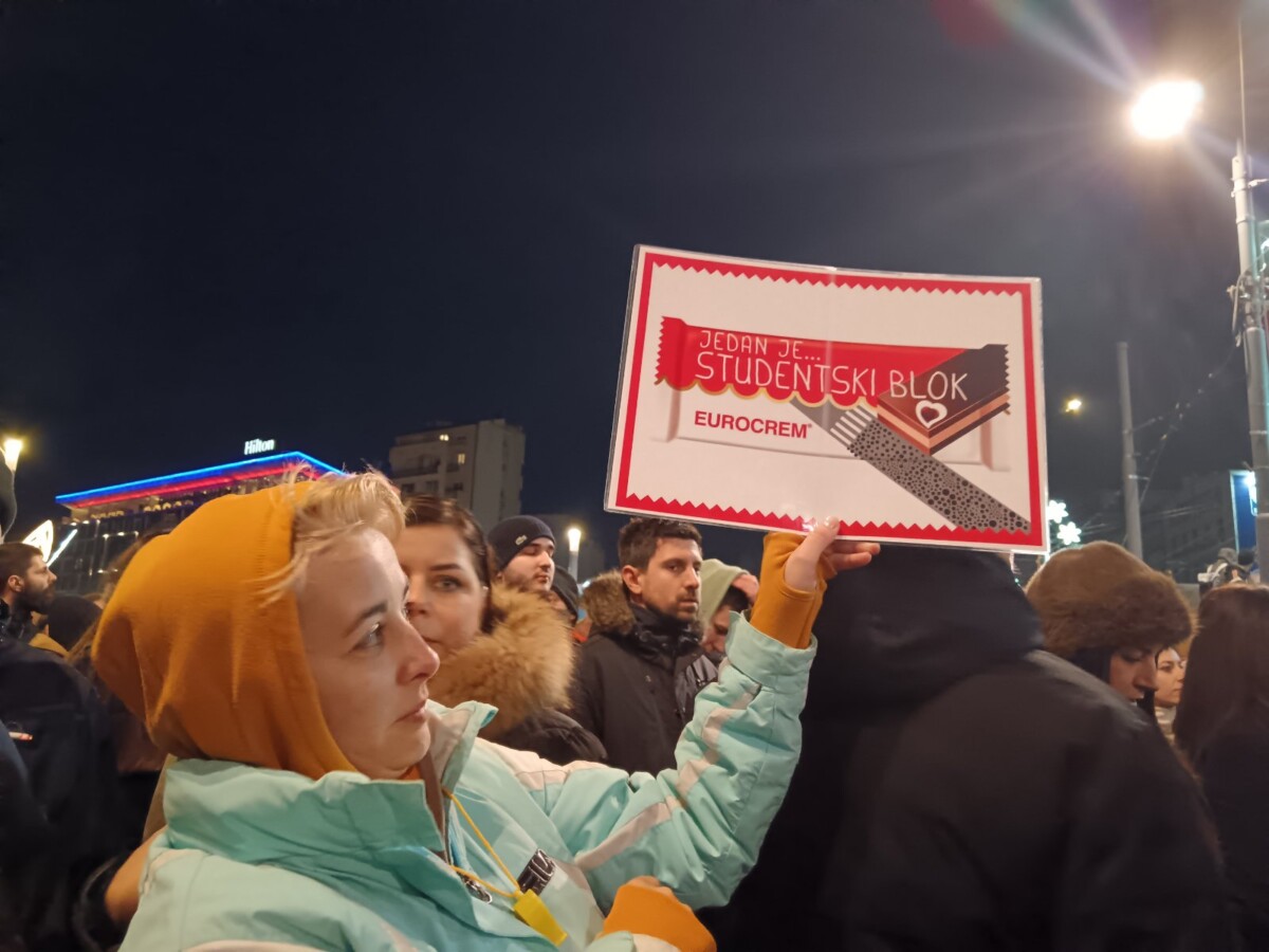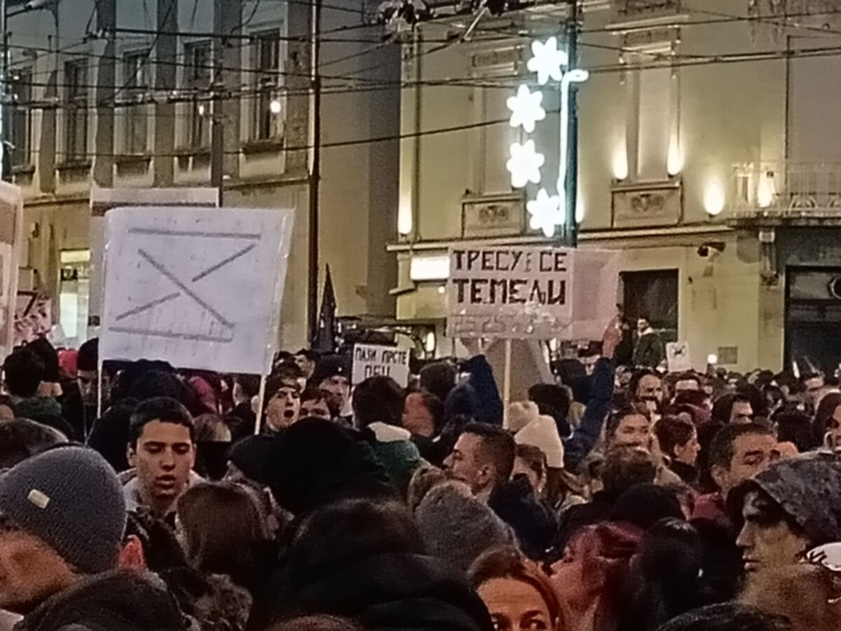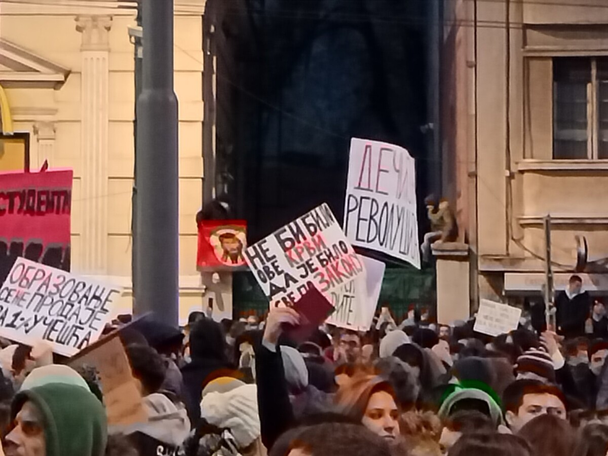 Kolone ljudi počele su pristizati na centralni trg “Slavija” još 16 sati kada je skup i zvanično počeo, a studenti, učenici i poljoprivrednici sa sobom su nosili i brojne poruke i transparente od kojih se najviše ističe onaj s natpisom “Beograd je opet svet”.