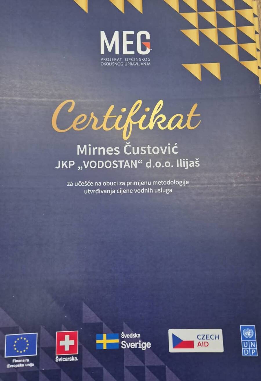 Mirnes Čustović iz Ilijaša bio je jedan od sudionika četvrte radionice posvećene metodologiji utvrđivanja cijena vodnih usluga u Bosni i Hercegovini. Radionica je oganizovana u okviru Projekta općinskog okolišnog upravljanja #MEG2 koja je okupila mlade stručnjake kako bi unaprijedili znanje o pravilnom izračunavanju cijena vodnih usluga, što će biti ključni dio budućeg entitetskog zakona (koji je u formi Nacrta) o vodnim uslugama.