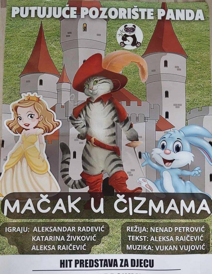 “Mačak u čizmama” je poznata bajka koja nas podsjeća na važnost pameti, hrabrosti i prijateljstva. Kroz šaljive dijaloge, živahne scene i nezaboravne likove, ova predstava obećava da će publiku odvesti u svijet fantazije, gdje mačak s lukavim planovima i duhovitim šalama osvaja sve oko sebe.