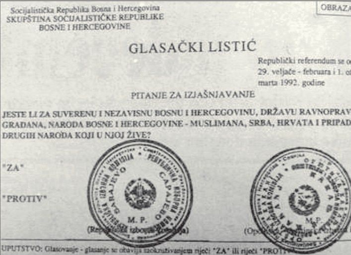 Referendum je raspisan za 29. februar i 1. mart 1992. godine. Građani su glasali odgovarajući na pitanje: “Jeste li za suverenu i nezavisnu BiH, državu ravnopravnih građana, naroda BiH – Muslimana, Srba, Hrvata i pripadnika drugih naroda koji u njoj žive?”.