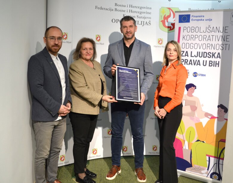 Danas je u Kabinetu Općinskog načelnika Amara Dovadžije svečano uručena potpisana Povelja o poštivanju ljudskih prava u poslovanju, čime je Općina Ilijaš postala prva lokalna samouprava u Bosni i Hercegovini koja se zvanično obavezala na poštivanje i unapređenje standarda korporativne odgovornosti. Projekat „Poboljšanje korporativne odgovornosti za ljudska prava u BiH“, koji implementira Institut za razvoj mladih KULT u partnerstvu sa Sindikatom radnika trgovine i uslužnih djelatnosti te Udruženjem „Dajte nam šansu“, uz finansijsku podršku Evropske unije, ima za cilj unaprijediti mehanizme zaštite ljudskih prava u poslovnom sektoru u BiH.