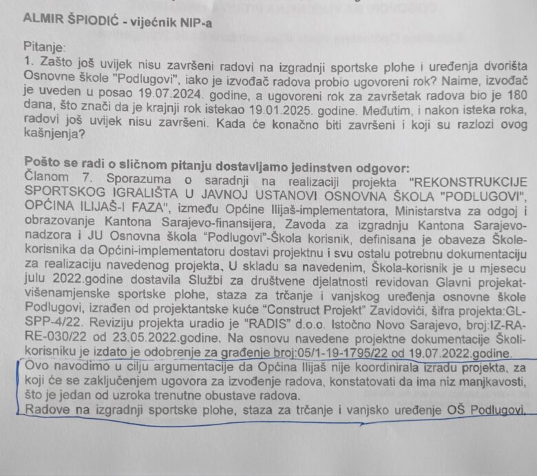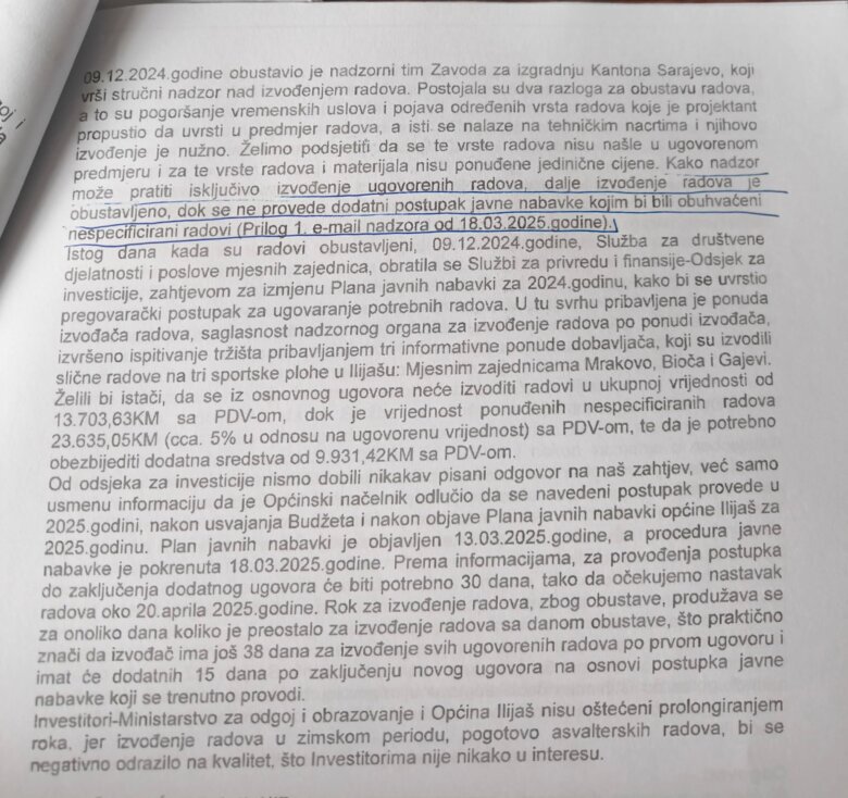 2. Proceduralni zastoj: Općina Ilijaš morala je mijenjati Plan javnih nabavki za 2024. i čekati odobrenje budžeta za 2025. kako bi pokrenula novi postupak za finansiranje radova u vrijednosti od 23.635 KM (sa PDV-om).