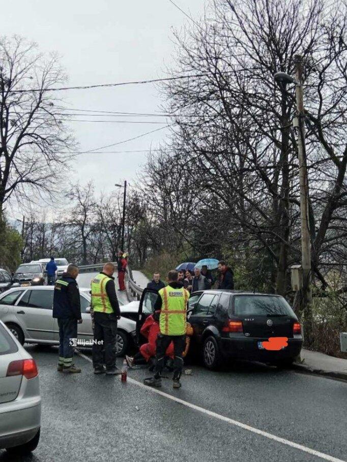 Kako je rečeno iz Operativnog centra MUP-a Kantona Sarajevo, u nesreći su sudjelovala dva vozila i dvije povrijeđene osobe upućene su na Kliniku urgentne medicine KCUS-a.