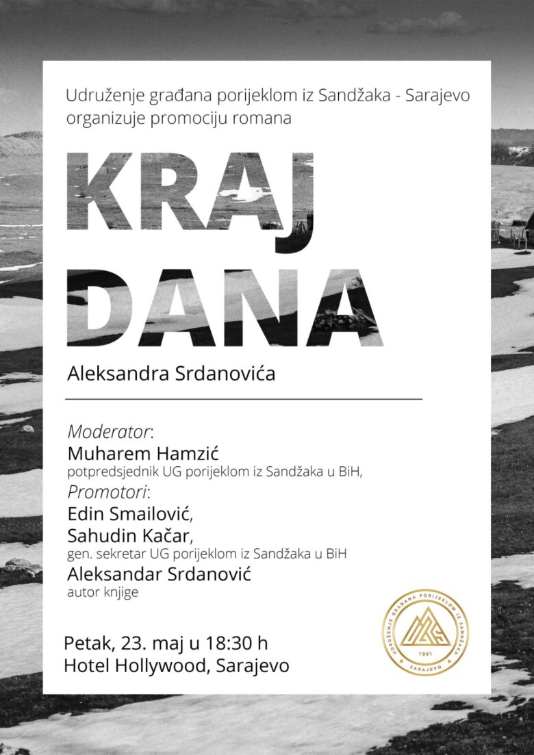 Udruženje građana porijeklom iz Sandžaka u BiH organizira promociju knjige „KRAJ DANA“ autora Aleksandra Srdanovića iz Bijelog Polja.