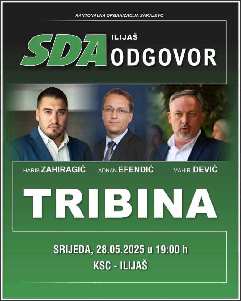 Općinska organizacija SDA Ilijaš i Kantonalni odbor SDA Sarajevo organizuju javnu tribinu pod nazivom „Odgovor“, koja će biti održana u sutra, srijedu, 28. maja 2025. godine, u Kino sali Ilijaš, s početkom u 19:00 sati.