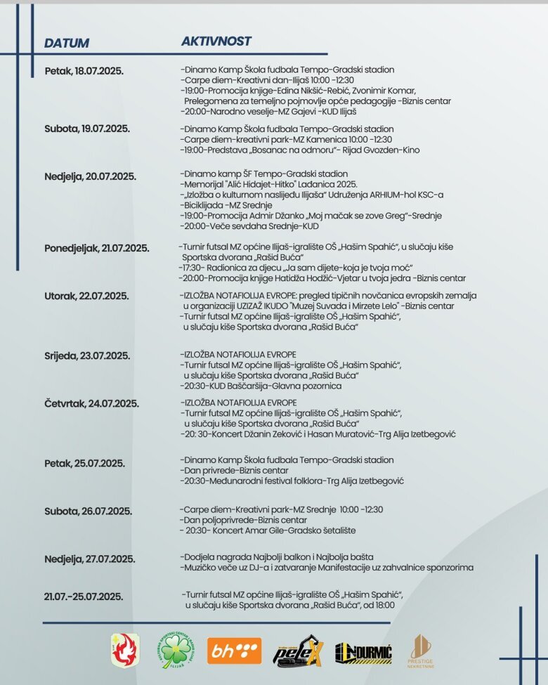 –Kao i prethodnih godina, KSC i Radio Ilijaš organizuje Manifestaciju Ilijaški dani uz podršku Općine Ilijaš. Bogat program ove godine obuhvata brojne kulturne, zabavne, sportske i edukativne sadržaje. Na samom otvaranju 01. jula nastupa Emrah Emšo i bend. U toku Manifestacije u prvom dijelu imat ćemo priliku uživati u koncertu naše velike zvijezde Mirze Selimovića, a bit će tu na kraju i Amar Jašarspahić Gile. Izdavajam i hit predstavu -komediju Bosanac na odmoru glumca Rijada Gvozdena što mislim da će posebno radovati našu pozorišnu publiku. Želim se zahvaliti Općini Ilijaš, Ministarstvu kulture i sporta KS, našim sponzorima koji su pomogli organizaciju Manifestacije: generalni sponzor BH Telecom, zlatni sponzor Pelex, srebrni Niskogradnja Durmić i bronzani sponzor arhitektonski studio Prestige. Zahvaljujem i našim medijskim sponzorima TVSA, RTV Vogošća, ilijas.info i ilijas.net.