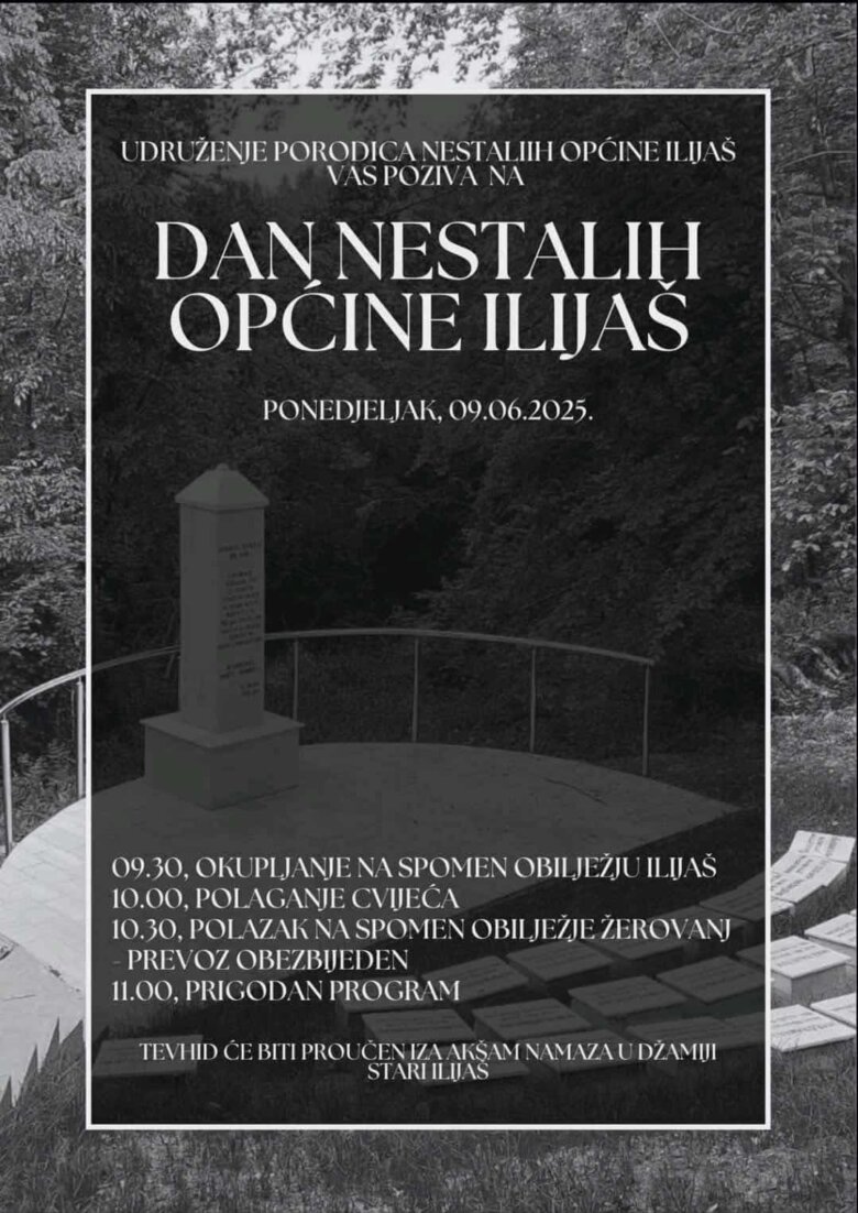 U ponedjeljak, 9. juna 2025. godine, Udruženje porodica nestalih općine Ilijaš poziva sve građane da se pridruže obilježavanju Dana nestalih općine Ilijaš. Ovaj dan posvećen je sjećanju na žrtve koje su nestale tokom teških vremena, a program će obuhvatiti niz dirljivih aktivnosti.