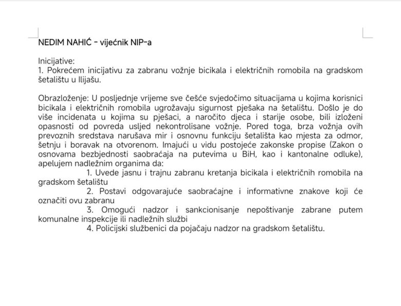 Također, prema dostupnoj informaciji ističemo da je vijećnik Naroda i Pravde u Općinskom vijeću Općine Ilijaš Nedim Nahić pokrenuo inicijativu kojom se traži rješenje ovog problema.