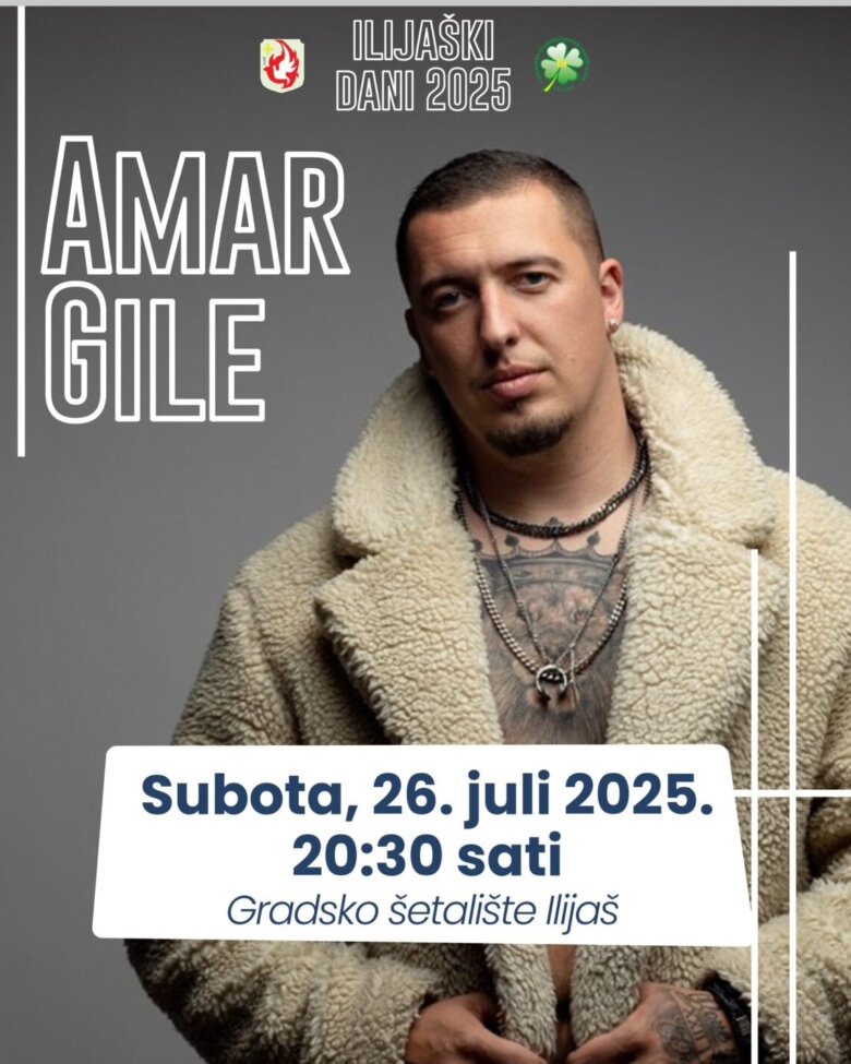 Poznati izvođač narodne muzike Amar Gile nastupiće u subotu, 26. jula 2025. godine, na Gradskom šetalištu u Ilijašu. Koncert počinje u 20:30 sati, a očekuje se veliki broj posjetilaca iz Ilijaša i okoline.