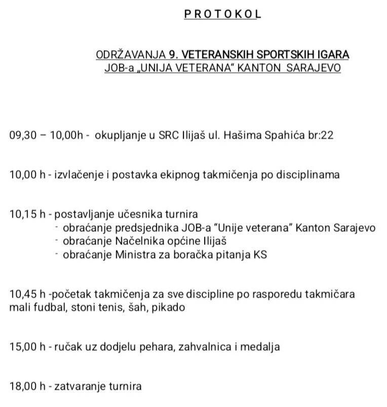 U sportskoj dvorani “Rašid Buća” u Ilijašu, u subotu, 4. oktobra 2025. godine, održat će se 9. Veteranske Sportske Igre Jedinstvene organizacije boraca (JOB-a) “Unija veterana” Kantona Sarajevo.