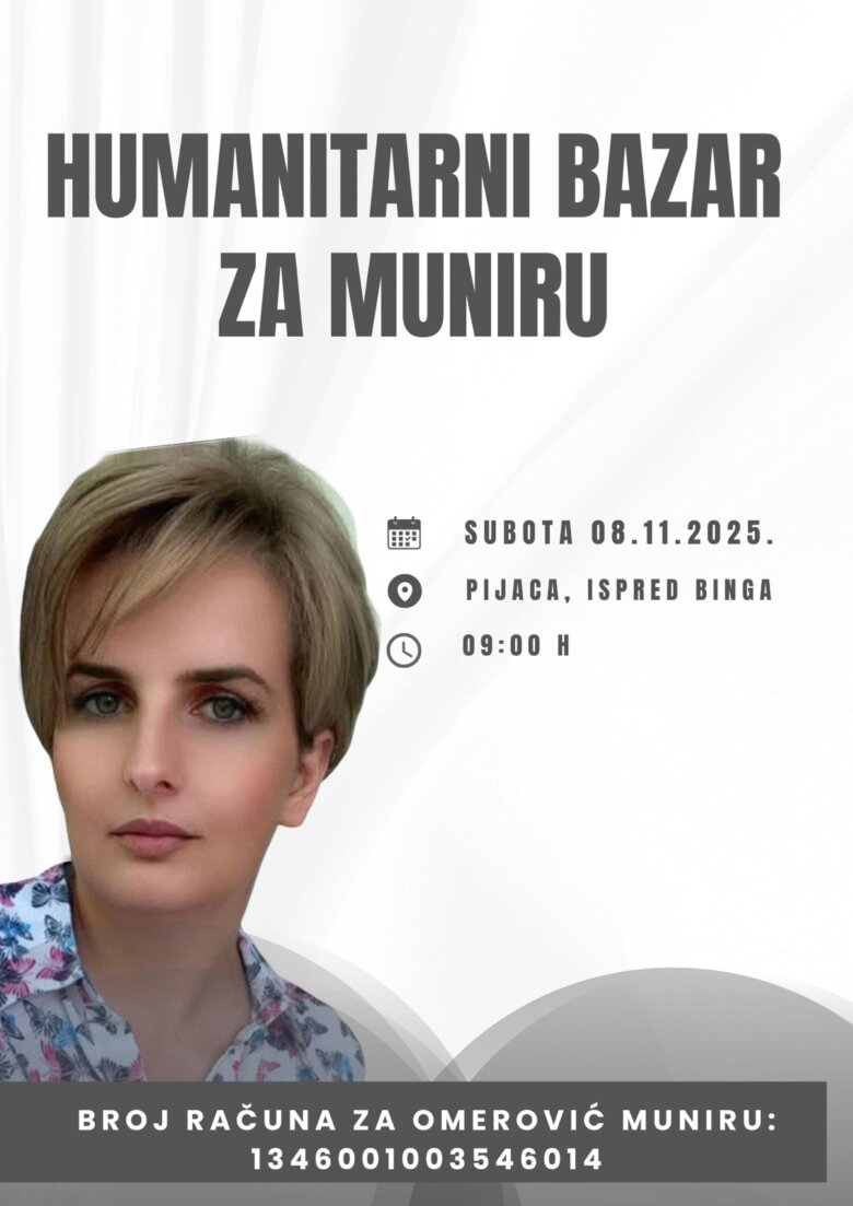 U subotu, 08. novembra 2025. od 9 sati ispred Binga, budimo jedno srce za Muniru.
