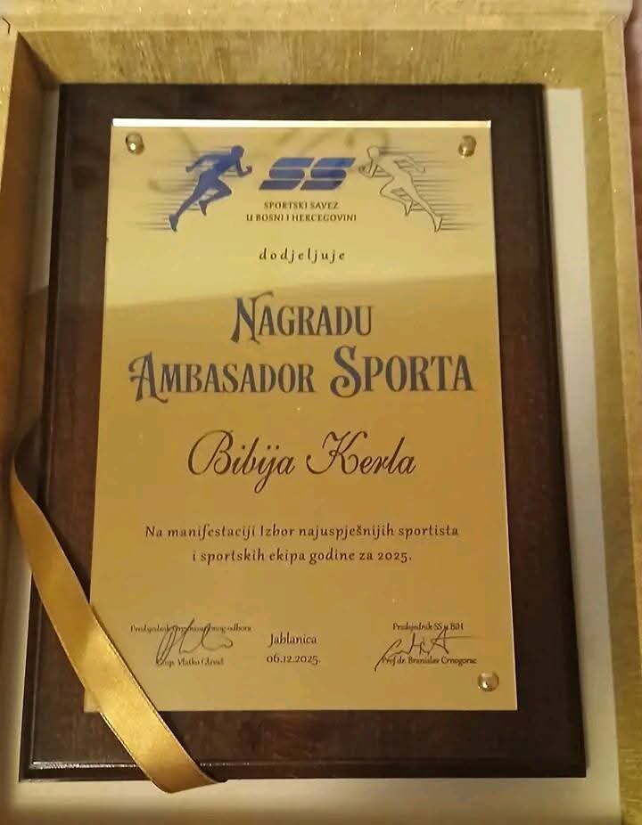 Nagrada Ambasadora sporta Bosne i Hercegovine za Bibiju Kerlu nije samo priznanje za prošle uspjehe, već je potvrda njenog dugogodišnjeg doprinosa sportu, ali i motivacija da nastavi biti inspiracija mladima koji tek kreću na sportski put.
