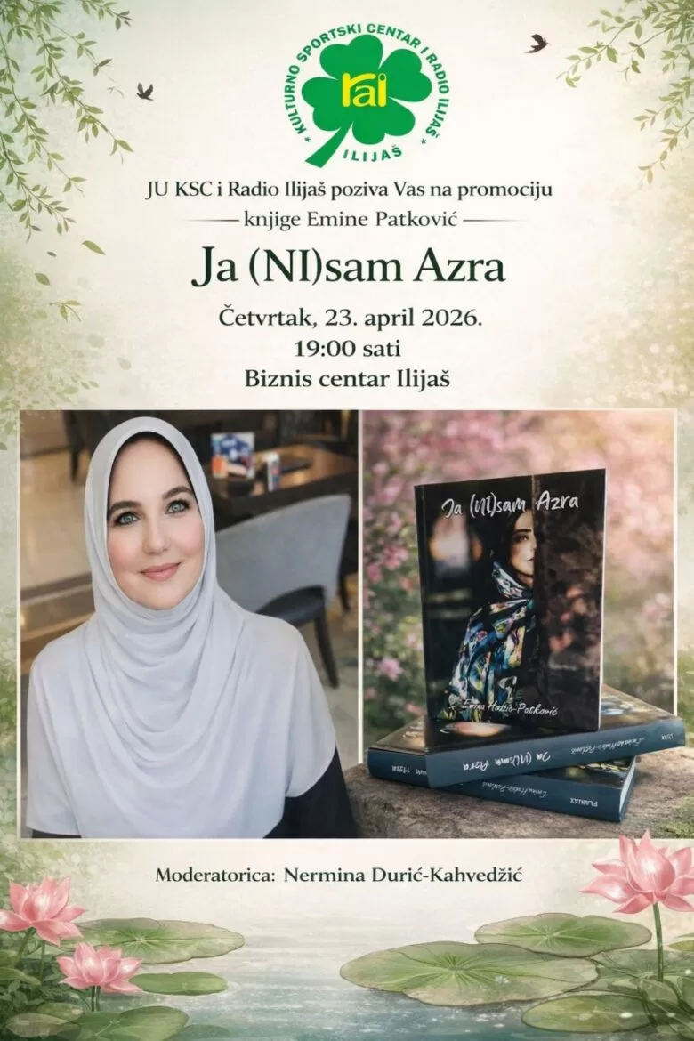 JU Kulturno-sportski centar i Radio Ilijaš najavili su promociju knjige „Ja (NI)sam Azra“, autorice Emine Patković, koja će biti održana u četvrtak, 23. aprila 2026. godine u Biznis centru Ilijaš, sa početkom u 19:00 sati.